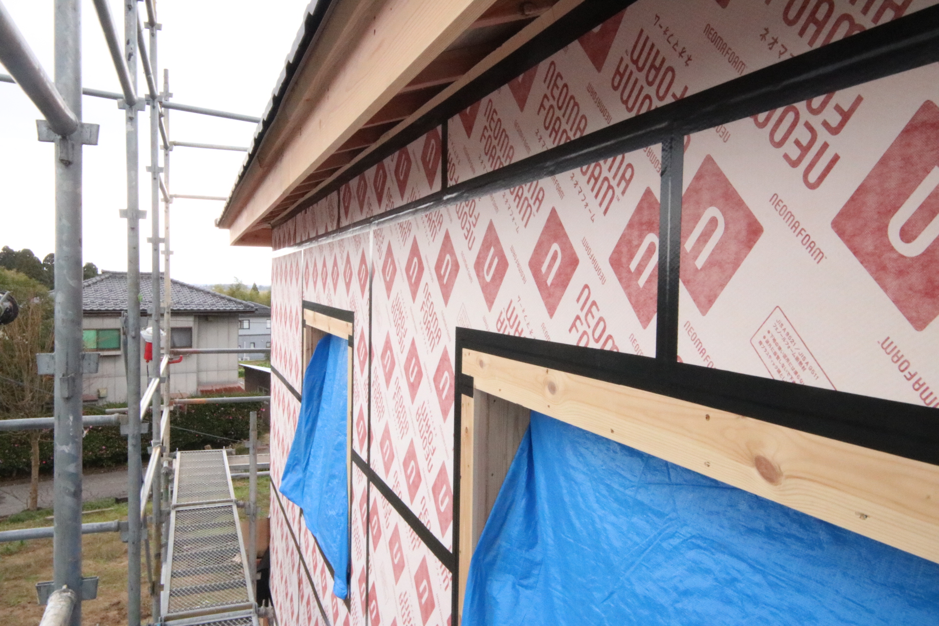 外断熱材を防水テープ処理する事で、防水層がひとつ増えるのでそれもメリットです。