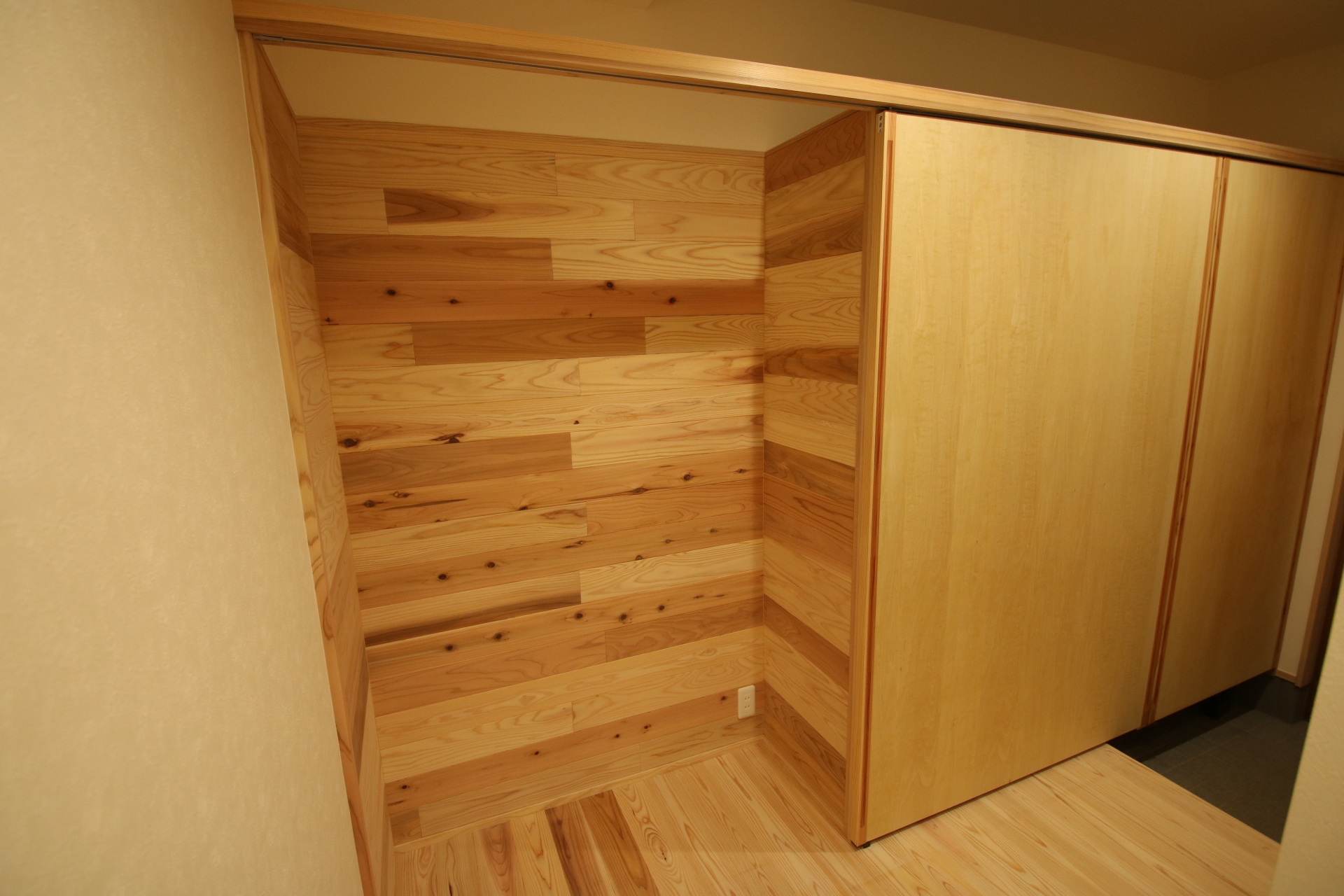 上部は掲示板にできるよう板張りとしました。