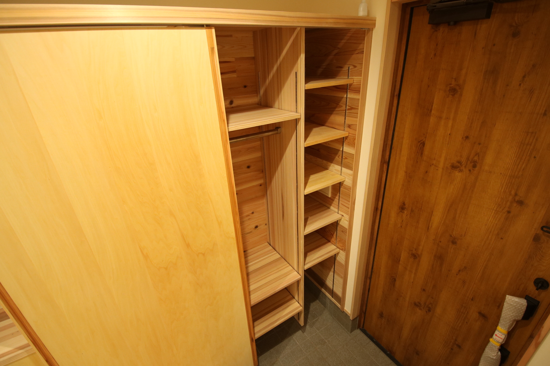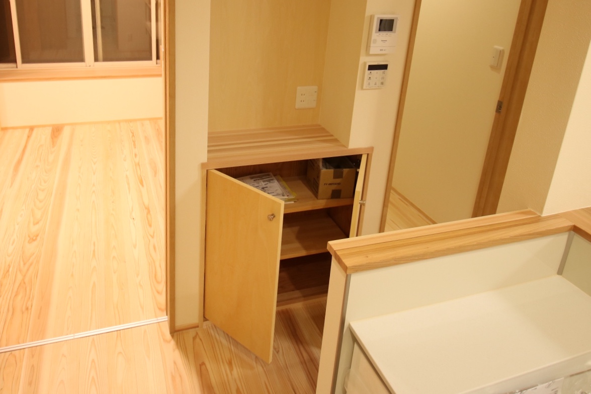 反対面の階段下に収納を追加。