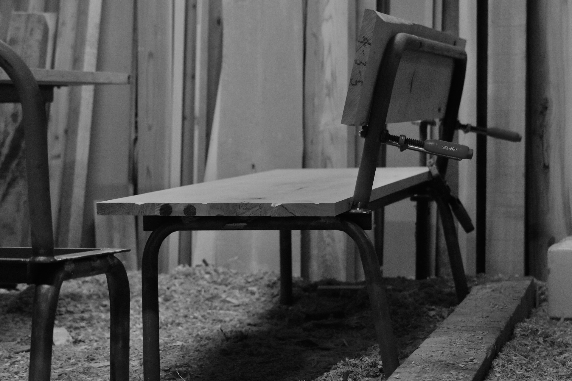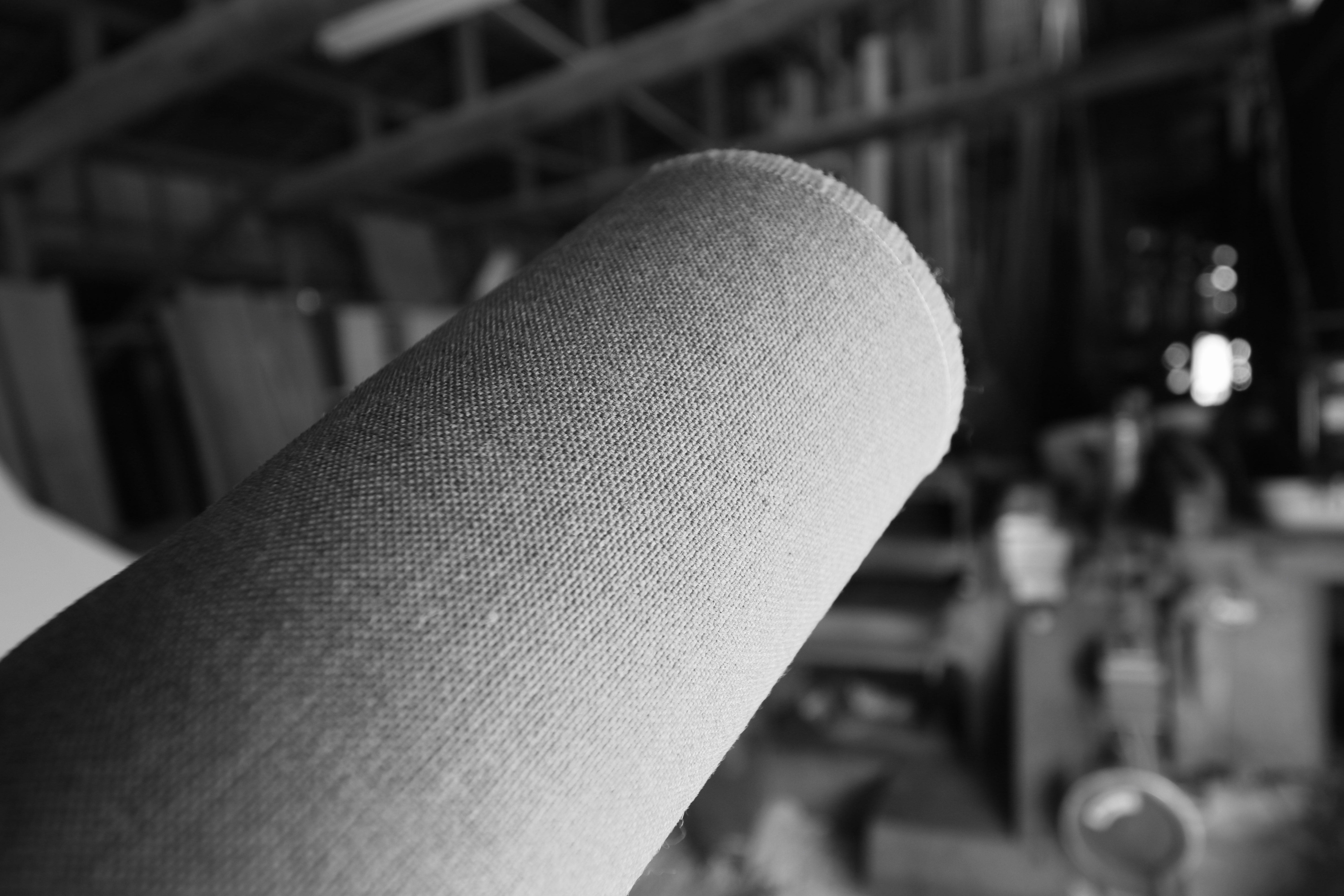 脚部と板部は構造として充分であればそれで良し。魅せる部分はすべてkvadratちゃんに担ってもらってます。前ブログの「ある狙い」とはそこ「ギャップ」でありました。スーツやドレスで触れるのが常であるくらいの上品でしっかりした生地に、作業着で造作した工具跡の残る配管部材を合わせたかった。